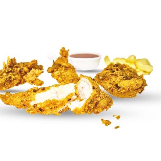 Treat yourself to the 5 Piece Zesto Tender Chicken Meal—crispy tenders bursting with zesty lemon, black pepper, and garlic, plus small fries, two dips, and a drink. A big taste for bigger cravings.